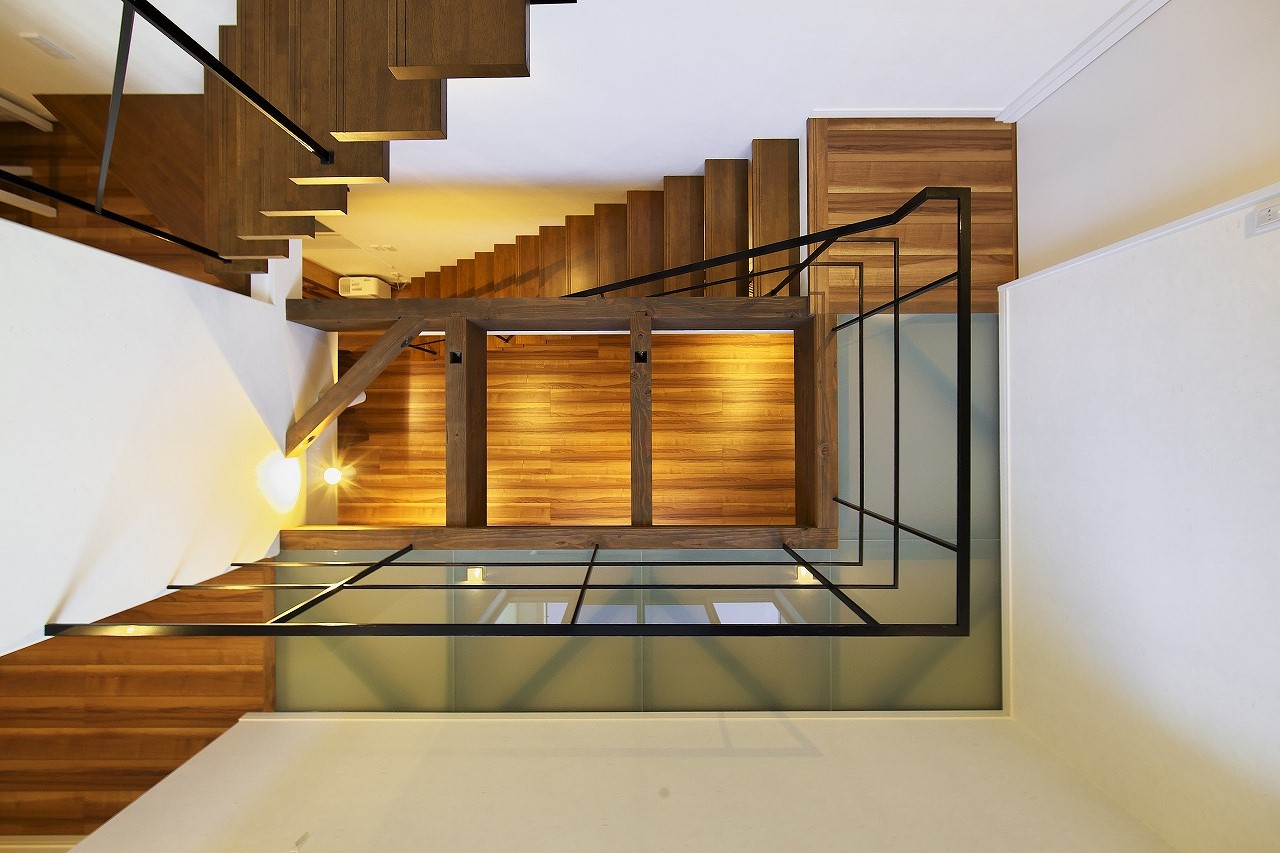 シースルーにしたのは、階段の視覚的な軽快感と外部から光を取り込むためです。