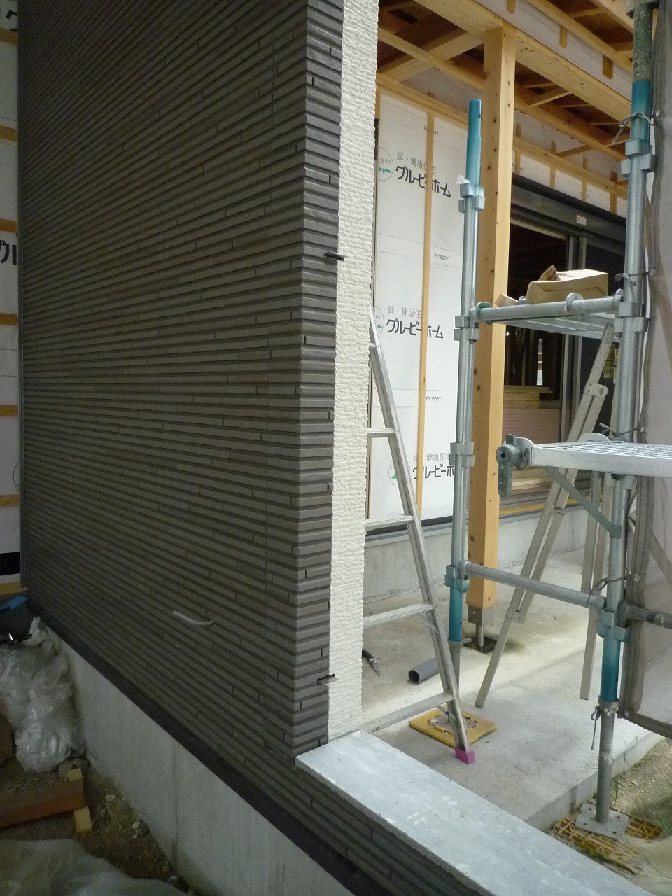 安城で建築中のI様邸は外壁の塗材を施工中。