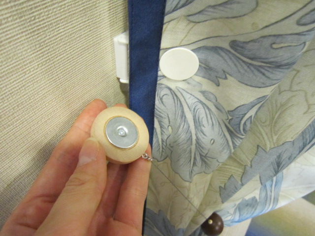 こちらはマグネットタッセル!壁付けのフックにかけなくても簡単にカーテンがまとめられるので、とても便利そうです。とてもシンプルなデザインです![]()
