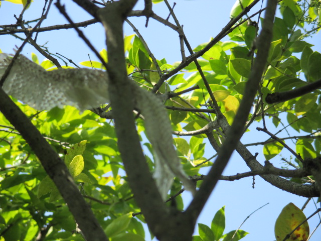 その後、敷地内の木に脱皮した蛇の皮を発見しました!!