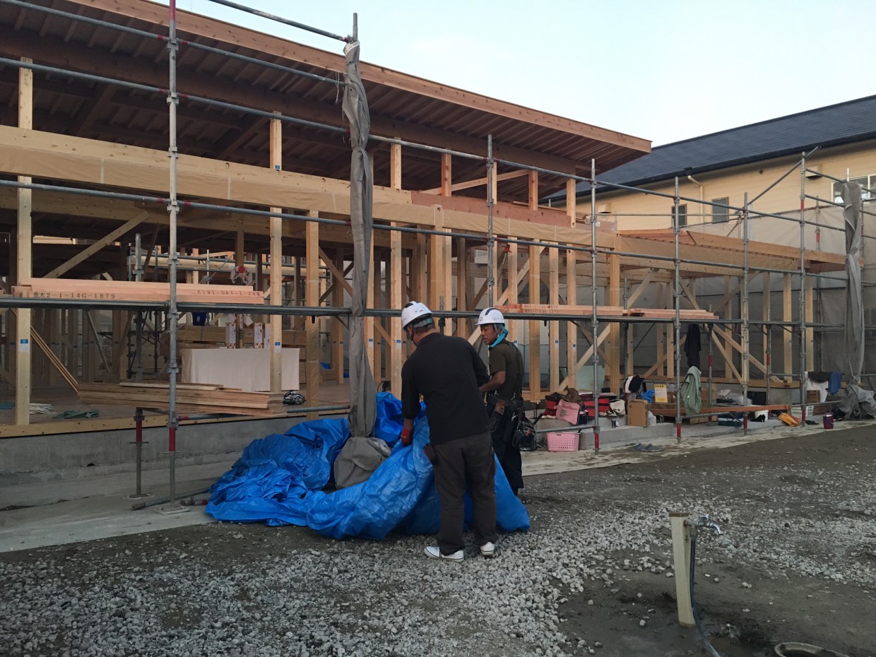 上棟も終盤にさしかかり、屋根下地をはっています!実際は写真に写る倍くらいの人数の職人さんに作業していただきました!