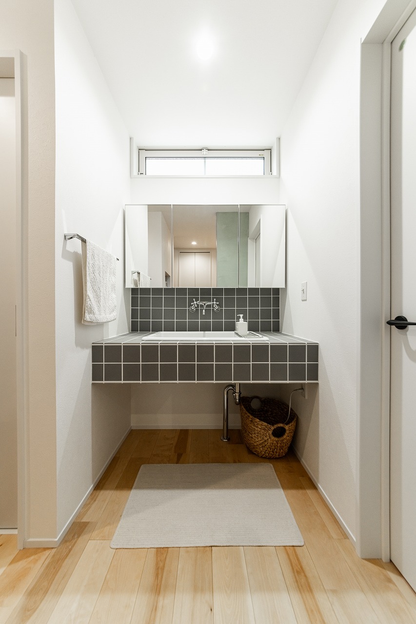 • 清潔感のあるタイル調の造作洗面台。