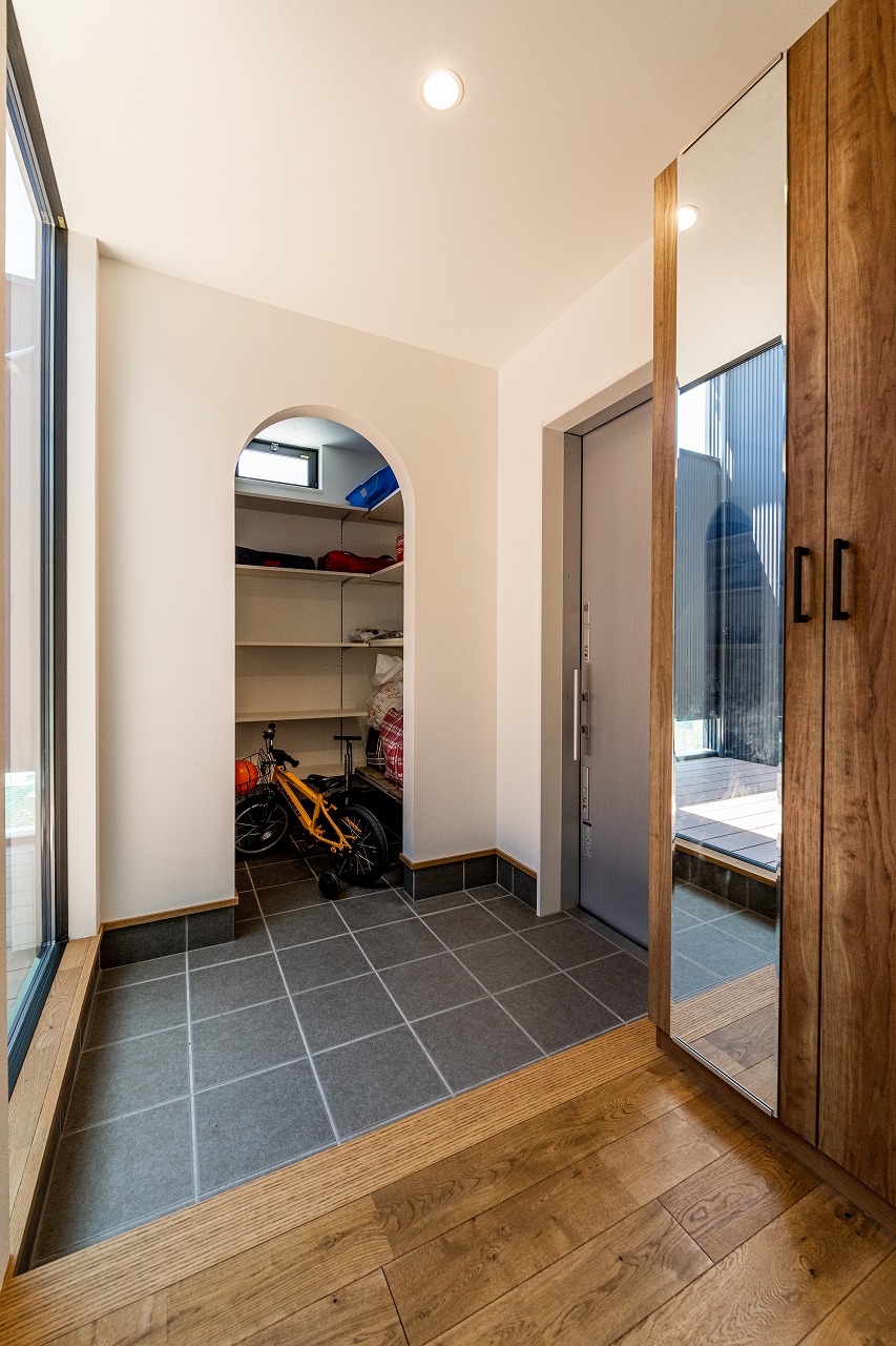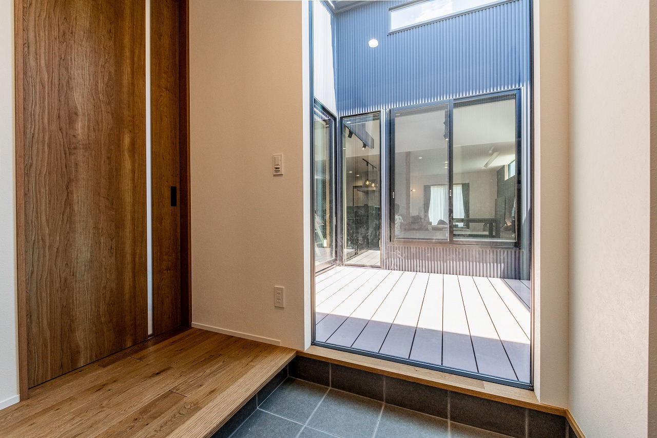 さらに木目調の軒天にすることでメリハリだけでなく、素材を調和させ柔らかな印象を与える外観となっています。
