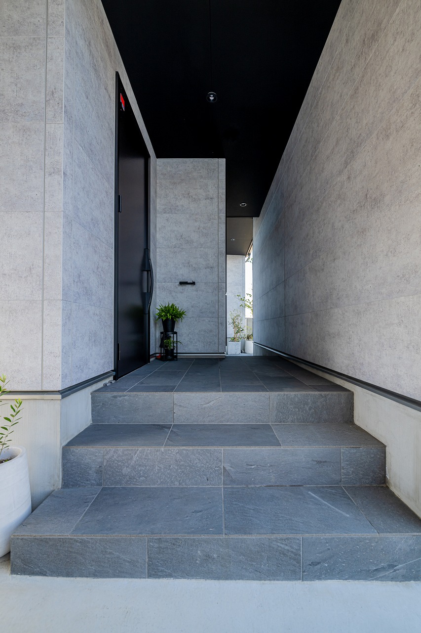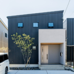 • ガレージと建物屋根は一続き。ブラックの軒天はアクセントとなり、スタイリッシュな印象を与えます。