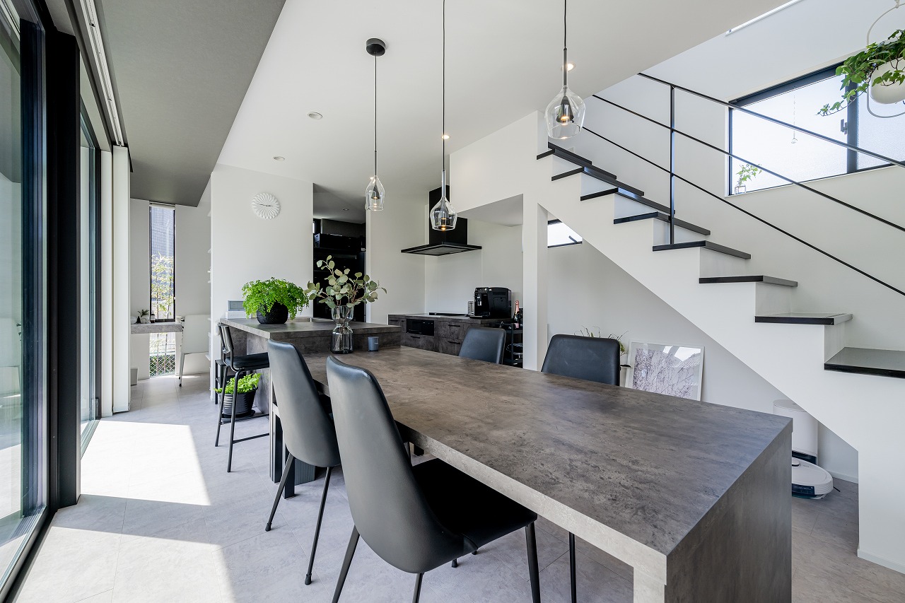 • キッチン・ダイニングテーブルは一体型になったデザイン。人気のグラフテクトを採用、ワークトップ広めでバーカウンターのように使えます。
