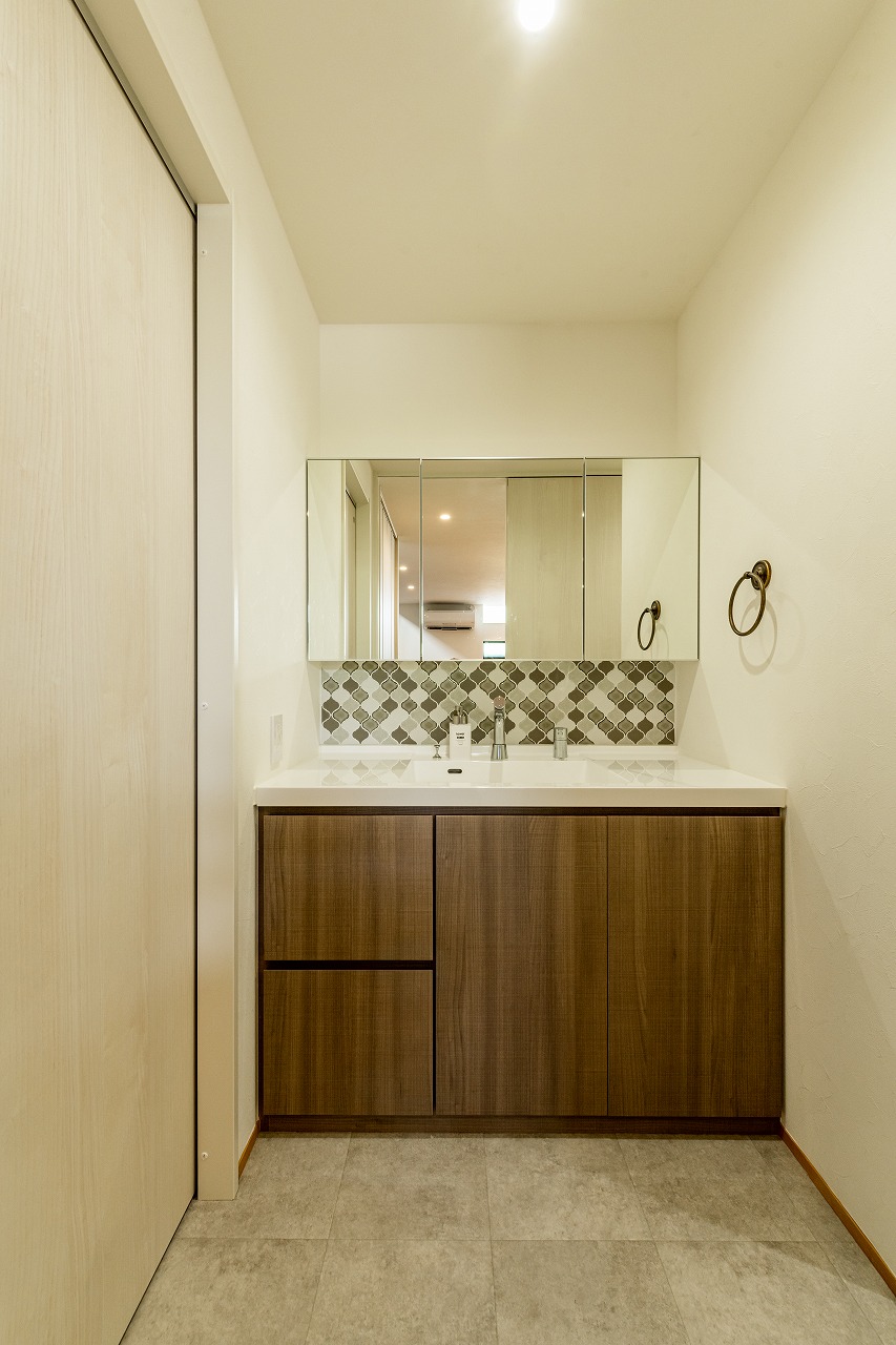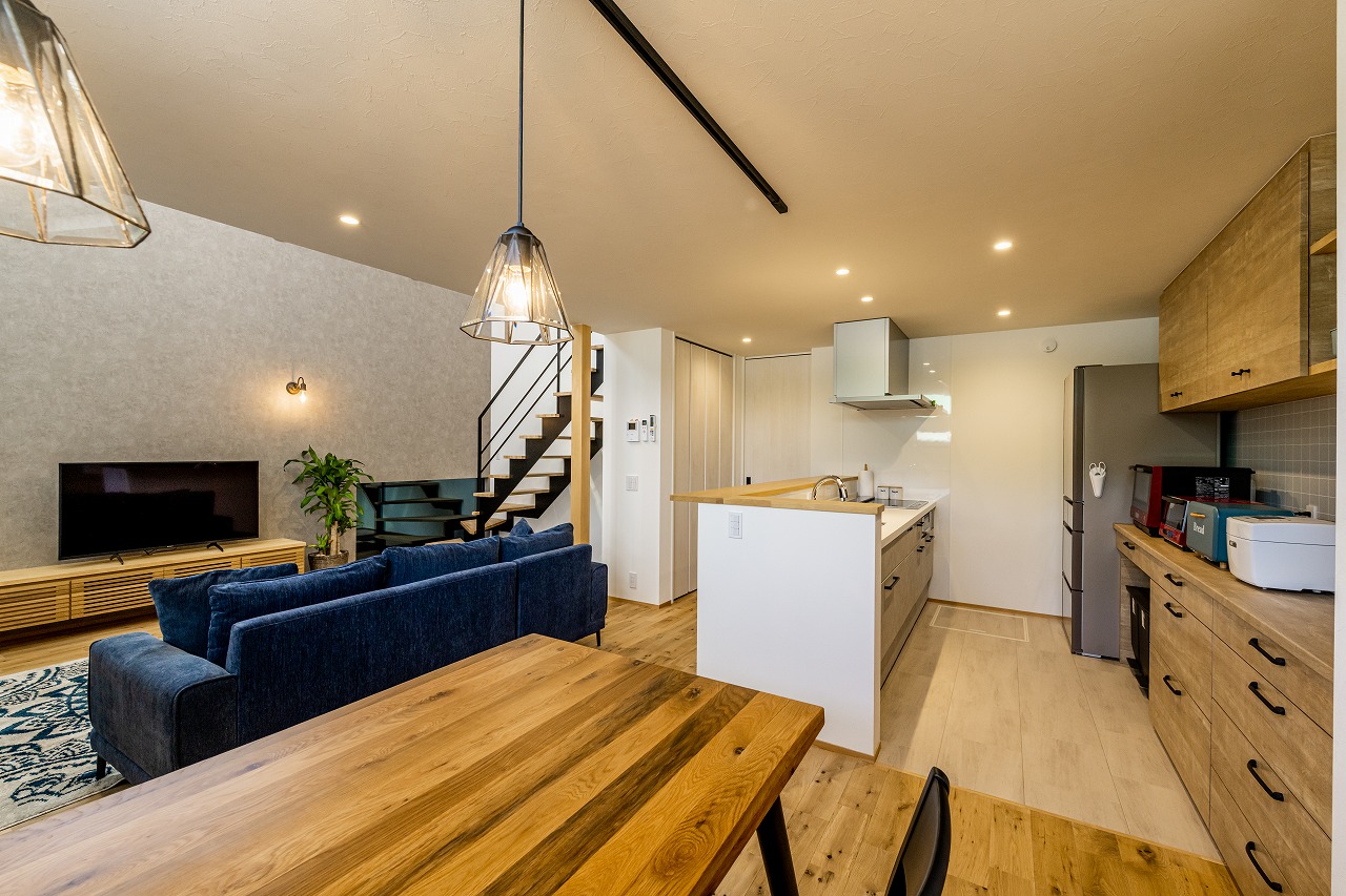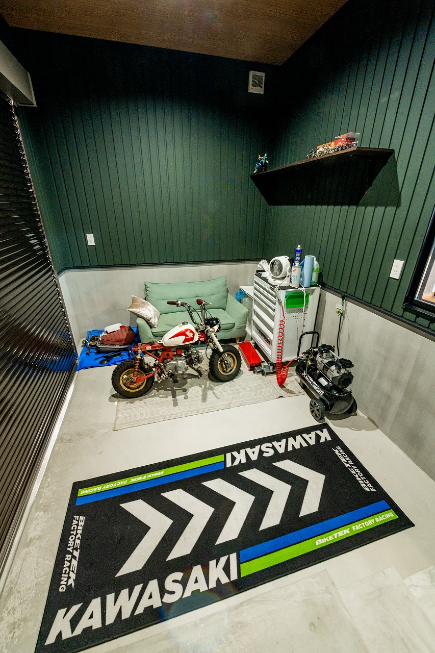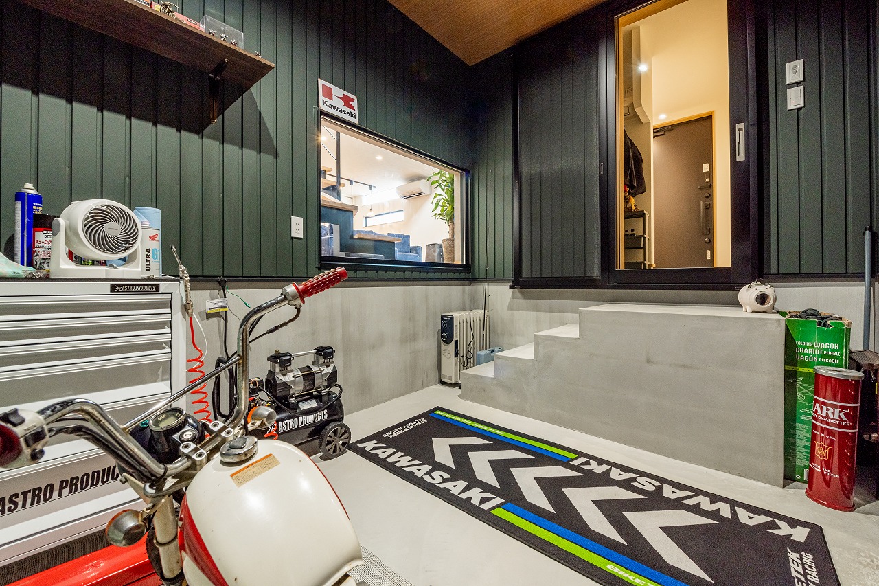 異素材が調和したバイクガレージの家 バイクガレージは玄関入ってすぐの扉から入れます。LDKのFIX窓ともつながっており、いつでもご自慢のバイクガレージを眺めることができます。 吹抜上部には3つのスリット窓を配置。太陽の光が降り注ぎ少しの照明でもしっかりと明るさを確保できます。 W2700でキッチン家電を並べてもまだ余裕な広さ。しまう・置く場所を決めることでいつでもきれいな空間を保てます。 扉・引き出しをつけて収納しやすい造作洗面台に。アクセントにパフュームラインランタンのタイルを採用。 詳細 敷地面積:163.34㎡(49.40坪)、延床面積:106.62㎡(32.25坪)、構造種別:木造軸組在来工法、施工年月:2022年7月 #5914380POINT 異素材が調和したスタイリッシュな外観デザイン 趣味のバイクガレージ 吹抜で明るく開放的なリビング Prev ホテルライクを追求したガレージハウス Back to List Next 趣味と癒しが息づくこだわりの家 その他の建築実例 Other WORKS 【リビング・ダイニング】 異素材の美しさが響き合う、上質なくつろぎの家 【外観】 ホテルライクを感じさせる上質なアジアンリゾート風の平屋 【リビング・ダイニング】 開放感はそのままに、視線を遮るスマートな家 【外観】 敷地を有効活用し2階LDKを軸としたビルトインガレージハウス 【外観】 土間ダイニングから繋がる開放的な家 【リビング・ダイニング】 異文化を繋ぐ快適な水まわりと、暮らしを楽しむ工夫が光る家。