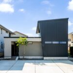 外観はプライバシーに配慮した窓配置と塗り壁×木のアクセントでシンプルに。